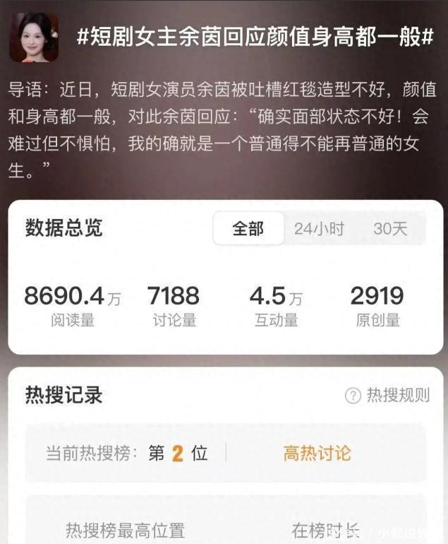 短剧女王余茵被吐槽,本人回应自己就是普通女生,颜值身高都一般